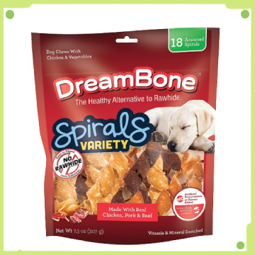 DreamBone Spirals Variety Pack, No-Rawhide Chews for Dogs, 18 Spiral Chews